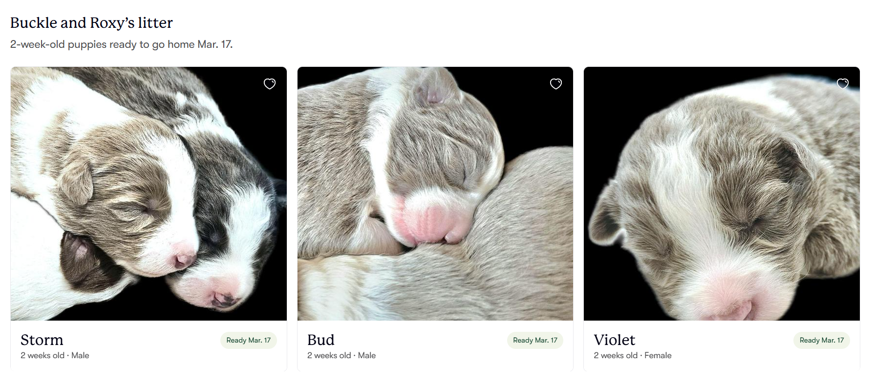 We welcomed a beautiful litter from Roxy & Buckle on January 20th, 2026. To inquire please email us at boston@lyncroftfarm.com or via our contact page.